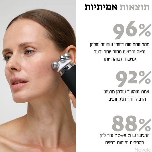המוצרים של novela פותחו עם מומחים לפיתוח העור, ומשלבים טכנולוגיה מתקדמת לתוצאות מהירות, נעימות ובריאות.